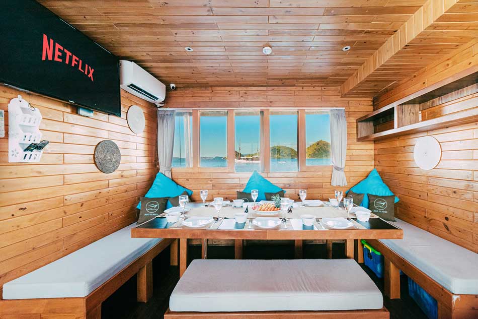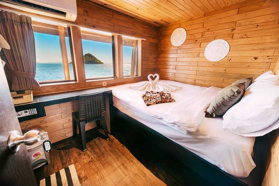 Each of the 10 cabins are equipped with air conditioning, ik 10 private ensuite bathroom and hot shower capacity 20 Person